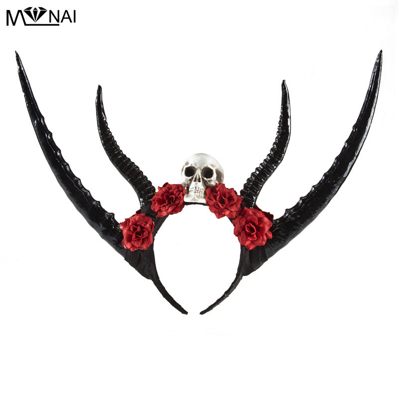 Gothic lolita devil horn headband Lolita hair accessories dark flower heavy industry Halloween Christmas headdress