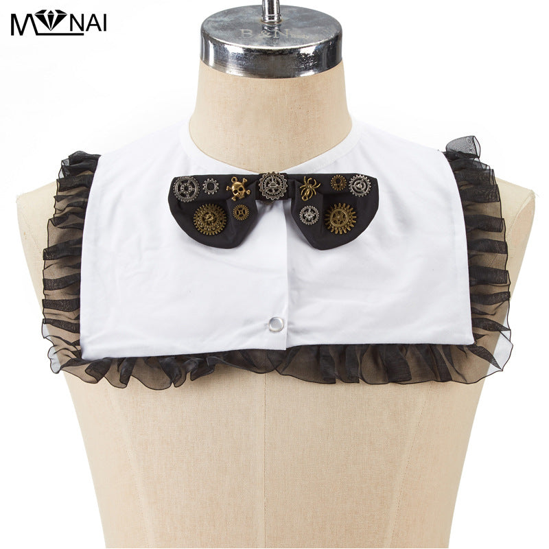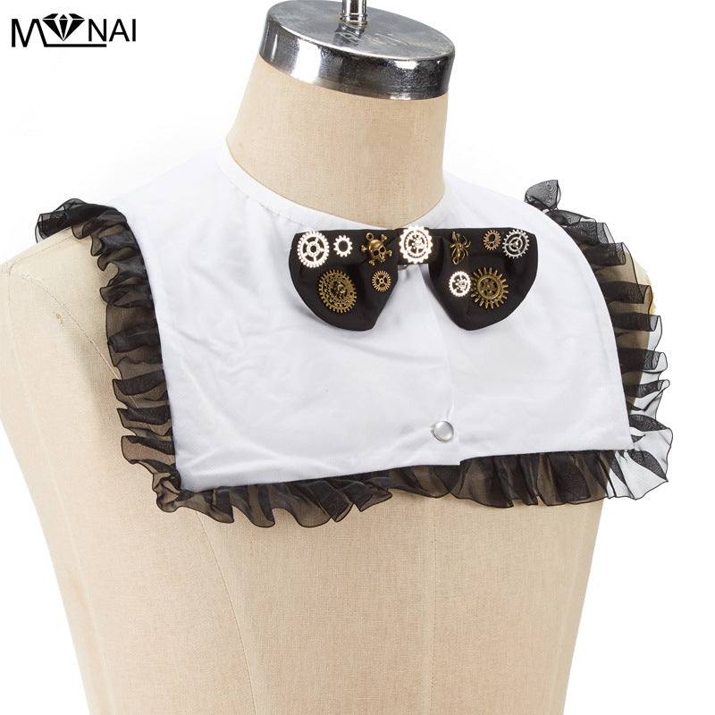 Goth Black Bow False Collar Lolita Lace Trim Blouse Decorative Collar Show Necklace