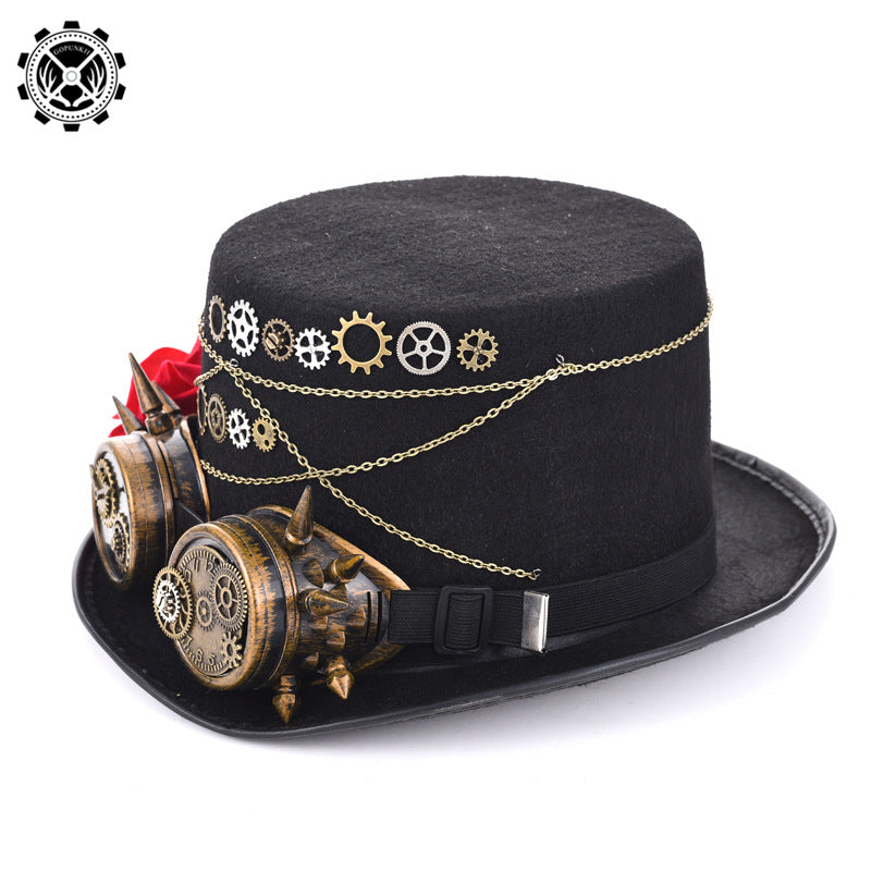 Steampunk hat rose gear chain top hat punk glasses gay decoration hat lolita accessories