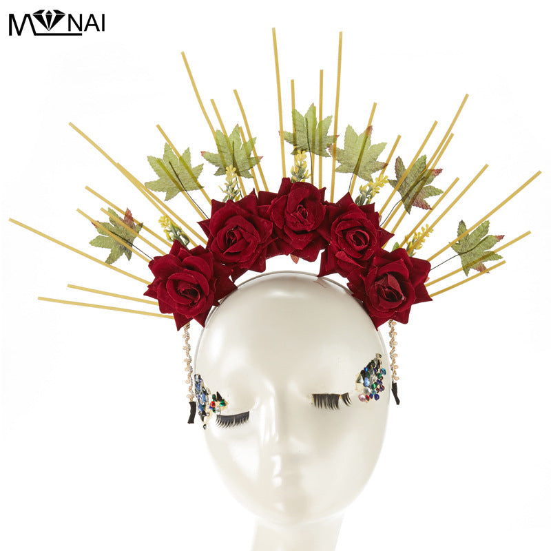 Lolita headband flowers kc headdress Gothic Halloween dark show Our Lady halo show hair accessories
